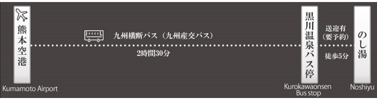 熊本空港より 九州横断バス(九州産交バス)■熊本空港 ⇒ 黒川温泉バス停 :約2時間30分