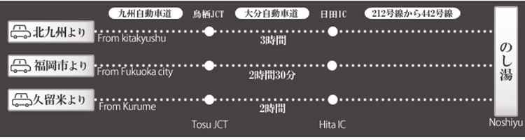 福岡空港より 黒川温泉直行バス(西鉄高速バス)■福岡空港 ⇒ 黒川温泉バス停 :約2時間15分